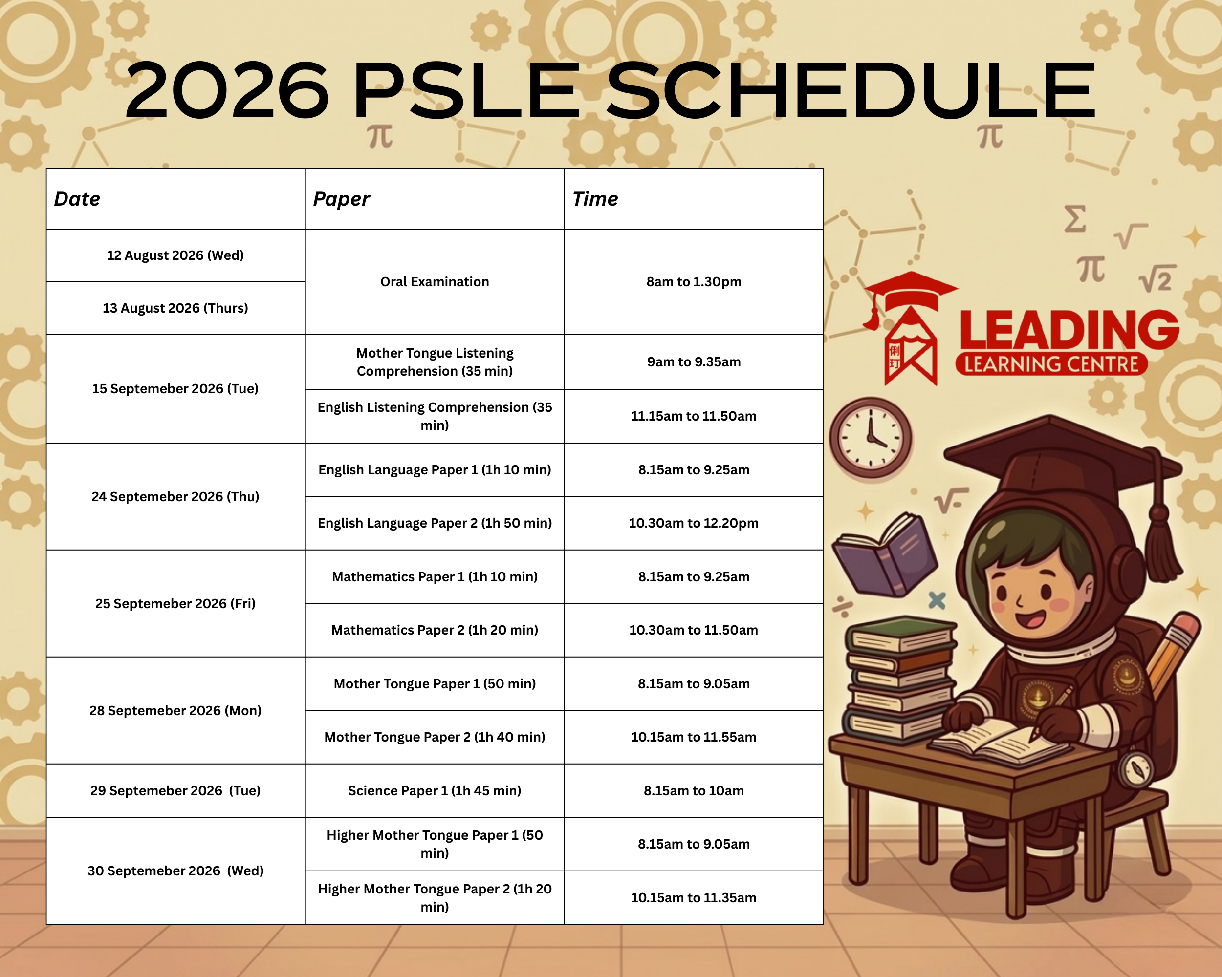 Check the full schedule on https://file.go.gov.sg/2026-psle-exam-cal.pdf